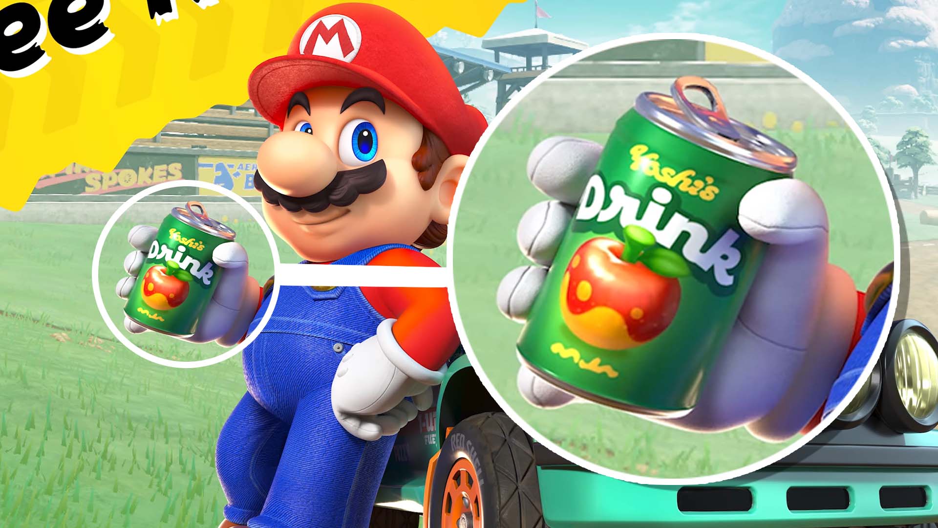 Nintendo's famous jumping plumber can be seen cracking a cold one, but what is in that can?