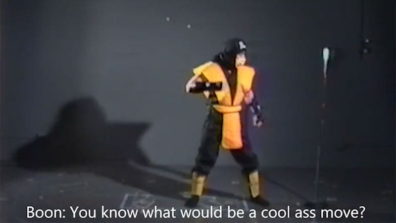 The 1992 footage shows Ed Boon coming up with the move live, alongside Scorpion's actor